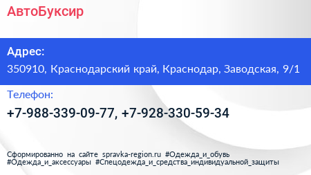 АвтоБуксир по адресу 350910, Краснодарский край, Краснодар, Заводская, 9/1 в дальнейшем Организация, размещена в следующих категориях: