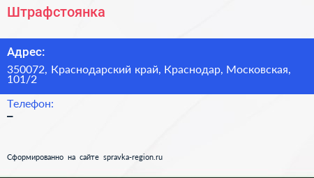 Штрафстоянка по адресу 350072, Краснодарский край, Краснодар, Московская, 101/2 в дальнейшем Организация, размещена в следующих категориях: