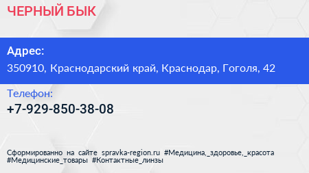 ЧЕРНЫЙ БЫК по адресу 350910, Краснодарский край, Краснодар, Гоголя, 42 в дальнейшем Организация, размещена в следующих категориях: