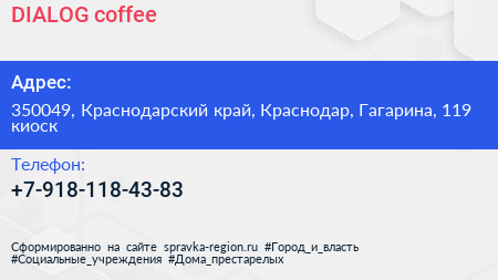 DIALOG coffee по адресу 350049, Краснодарский край, Краснодар, Гагарина, 119 киоск в дальнейшем Организация, размещена в следующих категориях: