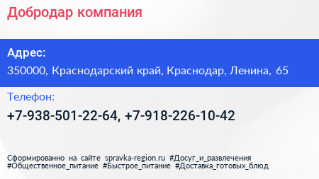 Добродар, компания по адресу 350000, Краснодарский край, Краснодар, Ленина, 65 в дальнейшем Организация, размещена в следующих категориях: