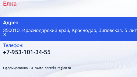 Елка по адресу 350010, Краснодарский край, Краснодар, Зиповская, 5 лит Х в дальнейшем Организация, размещена в следующих категориях: