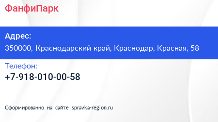ФанфиПарк по адресу 350000, Краснодарский край, Краснодар, Красная, 58 в дальнейшем Организация, размещена в следующих категориях: