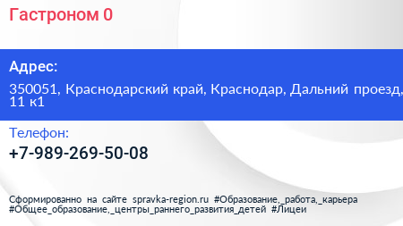 Гастроном №0 по адресу 350051, Краснодарский край, Краснодар, Дальний проезд, 11 к1 в дальнейшем Организация, размещена в следующих категориях: