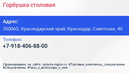Горбушка, столовая по адресу 350063, Краснодарский край, Краснодар, Советская, 40 в дальнейшем Организация, размещена в следующих категориях: