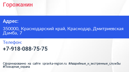 Горожанин по адресу 350000, Краснодарский край, Краснодар, Дмитриевская Дамба, 7 в дальнейшем Организация, размещена в следующих категориях: