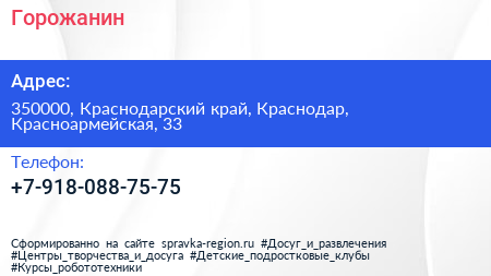 Горожанин по адресу 350000, Краснодарский край, Краснодар, Красноармейская, 33 в дальнейшем Организация, размещена в следующих категориях: