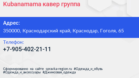 Kubanamama, кавер-группа по адресу 350000, Краснодарский край, Краснодар, Гоголя, 65 в дальнейшем Организация, размещена в следующих категориях: