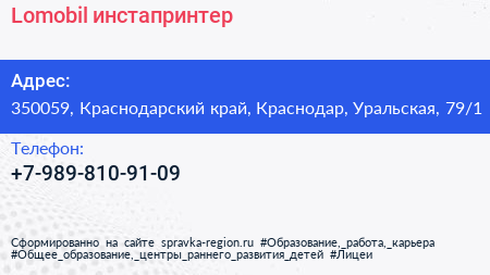 Lomobil, инстапринтер по адресу 350059, Краснодарский край, Краснодар, Уральская, 79/1 в дальнейшем Организация, размещена в следующих категориях:
