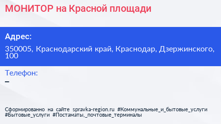 МОНИТОР на Красной площади по адресу 350005, Краснодарский край, Краснодар, Дзержинского, 100 в дальнейшем Организация, размещена в следующих категориях:
