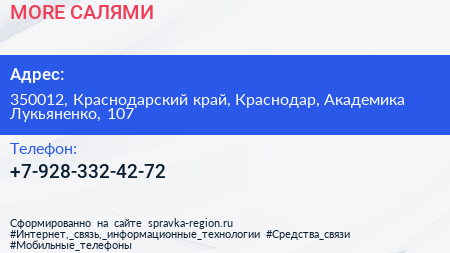 MORE САЛЯМИ по адресу 350012, Краснодарский край, Краснодар, Академика Лукьяненко, 107 в дальнейшем Организация, размещена в следующих категориях: