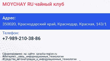MOYCHAY.RU, чайный клуб по адресу 350020, Краснодарский край, Краснодар, Красная, 143/1 в дальнейшем Организация, размещена в следующих категориях: