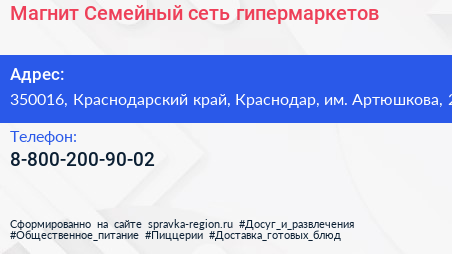 Магнит Семейный, сеть гипермаркетов по адресу 350016, Краснодарский край, Краснодар, им. Артюшкова, 2 в дальнейшем Организация, размещена в следующих категориях: