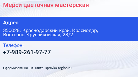 Мерси, цветочная мастерская по адресу 350028, Краснодарский край, Краснодар, Восточно-Кругликовская, 28/2 в дальнейшем Организация, размещена в следующих категориях: