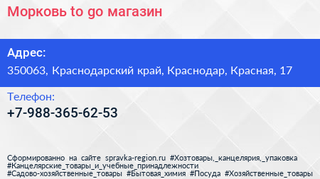 Морковь to go, магазин по адресу 350063, Краснодарский край, Краснодар, Красная, 17 в дальнейшем Организация, размещена в следующих категориях: