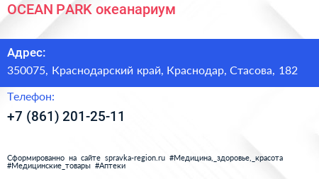 OCEAN PARK, океанариум по адресу 350075, Краснодарский край, Краснодар, Стасова, 182 в дальнейшем Организация, размещена в следующих категориях: