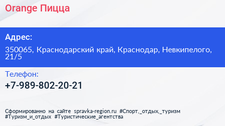 Orange Пицца по адресу 350065, Краснодарский край, Краснодар, Невкипелого, 21/5 в дальнейшем Организация, размещена в следующих категориях:
