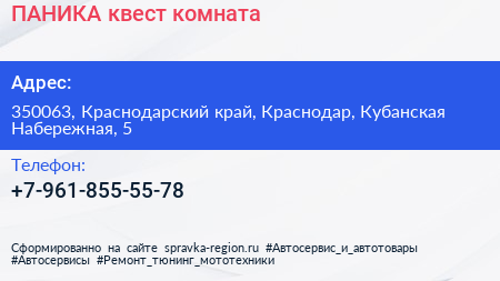 ПАНИКА, квест-комната по адресу 350063, Краснодарский край, Краснодар, Кубанская Набережная, 5 в дальнейшем Организация, размещена в следующих категориях: