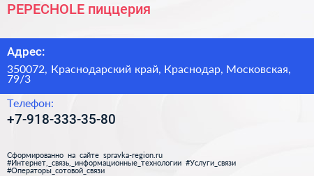 PEPECHOLE, пиццерия по адресу 350072, Краснодарский край, Краснодар, Московская, 79/3 в дальнейшем Организация, размещена в следующих категориях: