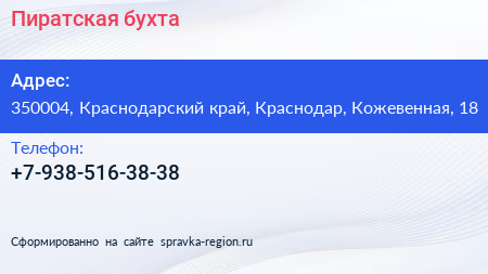 Пиратская бухта по адресу 350004, Краснодарский край, Краснодар, Кожевенная, 18 в дальнейшем Организация, размещена в следующих категориях: