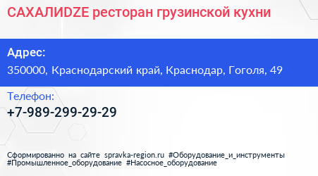 САХАЛИDZE, ресторан грузинской кухни по адресу 350000, Краснодарский край, Краснодар, Гоголя, 49 в дальнейшем Организация, размещена в следующих категориях:
