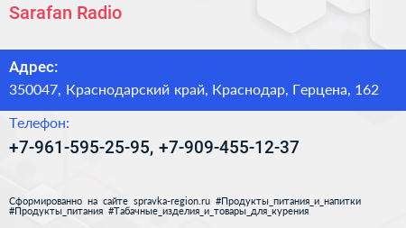 Sarafan Radio по адресу 350047, Краснодарский край, Краснодар, Герцена, 162 в дальнейшем Организация, размещена в следующих категориях:
