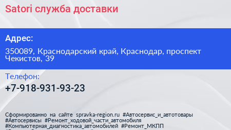 Satori, служба доставки по адресу 350089, Краснодарский край, Краснодар, проспект Чекистов, 39 в дальнейшем Организация, размещена в следующих категориях: