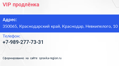 VIP-продлёнка по адресу 350065, Краснодарский край, Краснодар, Невкипелого, 10 в дальнейшем Организация, размещена в следующих категориях: