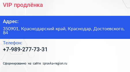 VIP-продлёнка по адресу 350901, Краснодарский край, Краснодар, Достоевского, 84 в дальнейшем Организация, размещена в следующих категориях: