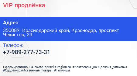 VIP-продлёнка по адресу 350089, Краснодарский край, Краснодар, проспект Чекистов, 23 в дальнейшем Организация, размещена в следующих категориях: