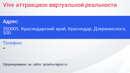 Vive, аттракцион виртуальной реальности по адресу 350005, Краснодарский край, Краснодар, Дзержинского, 100 в дальнейшем Организация, размещена в следующих категориях: