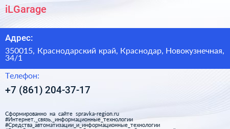 iLGarage по адресу 350015, Краснодарский край, Краснодар, Новокузнечная, 34/1 в дальнейшем Организация, размещена в следующих категориях: