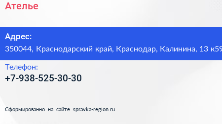 Ателье по адресу 350044, Краснодарский край, Краснодар, Калинина, 13 к59 в дальнейшем Организация, размещена в следующих категориях: