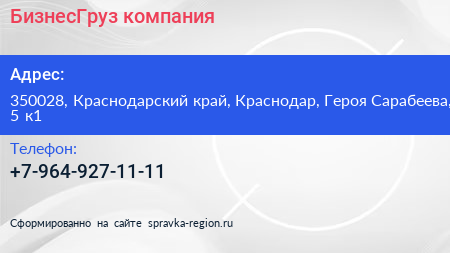 БизнесГруз, компания по адресу 350028, Краснодарский край, Краснодар, Героя Сарабеева, 5 к1 в дальнейшем Организация, размещена в следующих категориях: