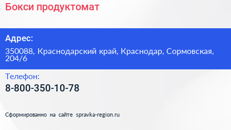 Бокси, продуктомат по адресу 350088, Краснодарский край, Краснодар, Сормовская, 204/6 в дальнейшем Организация, размещена в следующих категориях: