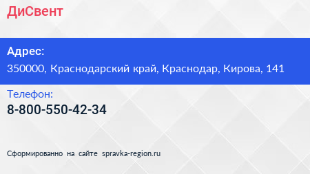 ДиСвент по адресу 350000, Краснодарский край, Краснодар, Кирова, 141 в дальнейшем Организация, размещена в следующих категориях: