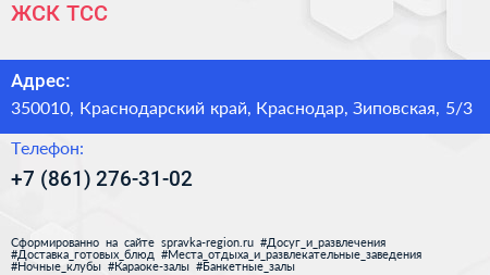 ЖСК ТСС по адресу 350010, Краснодарский край, Краснодар, Зиповская, 5/3 в дальнейшем Организация, размещена в следующих категориях: