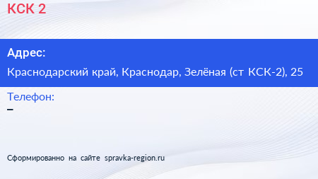 КСК-2 по адресу Краснодарский край, Краснодар, Зелёная (ст КСК-2), 25 в дальнейшем Организация, размещена в следующих категориях: