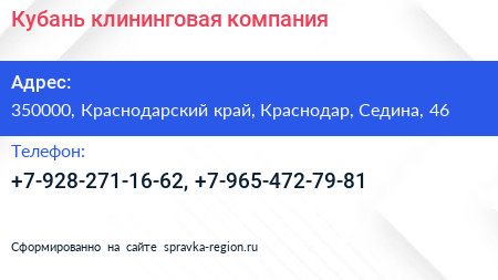 Кубань, клининговая компания по адресу 350000, Краснодарский край, Краснодар, Седина, 46 в дальнейшем Организация, размещена в следующих категориях: