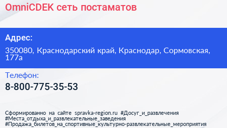 OmniCDEK, сеть постаматов по адресу 350080, Краснодарский край, Краснодар, Сормовская, 177а в дальнейшем Организация, размещена в следующих категориях: