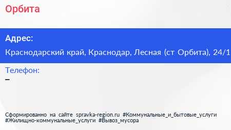 Орбита по адресу Краснодарский край, Краснодар, Лесная (ст Орбита), 24/1 в дальнейшем Организация, размещена в следующих категориях: