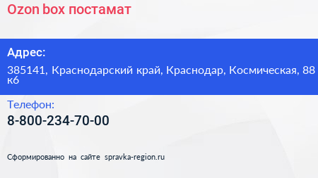 Ozon box, постамат по адресу 385141, Краснодарский край, Краснодар, Космическая, 88 к6 в дальнейшем Организация, размещена в следующих категориях: