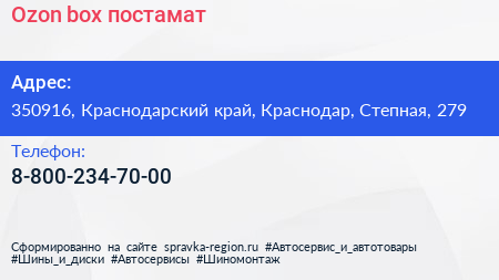Ozon box, постамат по адресу 350916, Краснодарский край, Краснодар, Степная, 279 в дальнейшем Организация, размещена в следующих категориях: