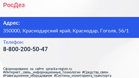 РосДез по адресу 350000, Краснодарский край, Краснодар, Гоголя, 56/1 в дальнейшем Организация, размещена в следующих категориях: