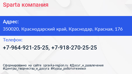 Sparta, компания по адресу 350020, Краснодарский край, Краснодар, Красная, 176 в дальнейшем Организация, размещена в следующих категориях: