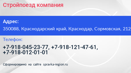 Стройпоезд, компания по адресу 350088, Краснодарский край, Краснодар, Сормовская, 212 в дальнейшем Организация, размещена в следующих категориях: