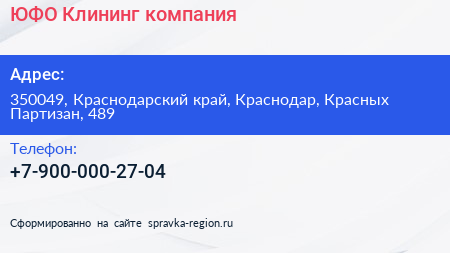 ЮФО-Клининг, компания по адресу 350049, Краснодарский край, Краснодар, Красных Партизан, 489 в дальнейшем Организация, размещена в следующих категориях: