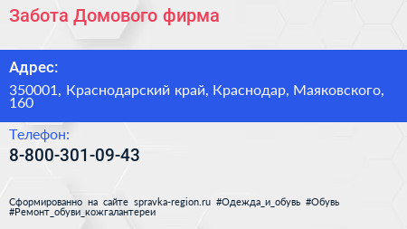 Забота Домового, фирма по адресу 350001, Краснодарский край, Краснодар, Маяковского, 160 в дальнейшем Организация, размещена в следующих категориях: