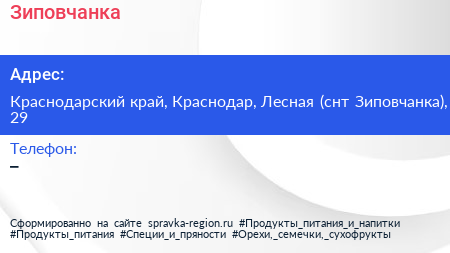 Зиповчанка по адресу Краснодарский край, Краснодар, Лесная (снт Зиповчанка), 29 в дальнейшем Организация, размещена в следующих категориях: