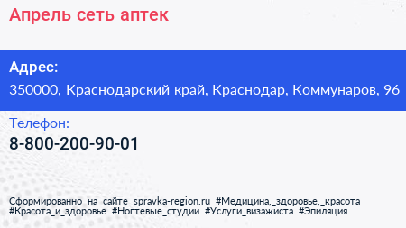 Апрель, сеть аптек по адресу 350000, Краснодарский край, Краснодар, Коммунаров, 96 в дальнейшем Организация, размещена в следующих категориях: